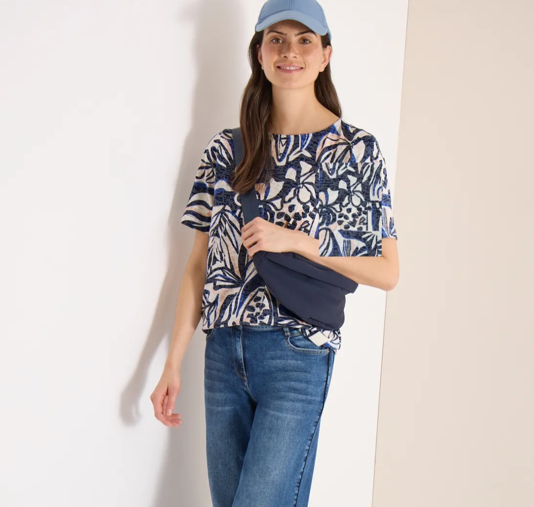 Burnout Shirt blau gemustert