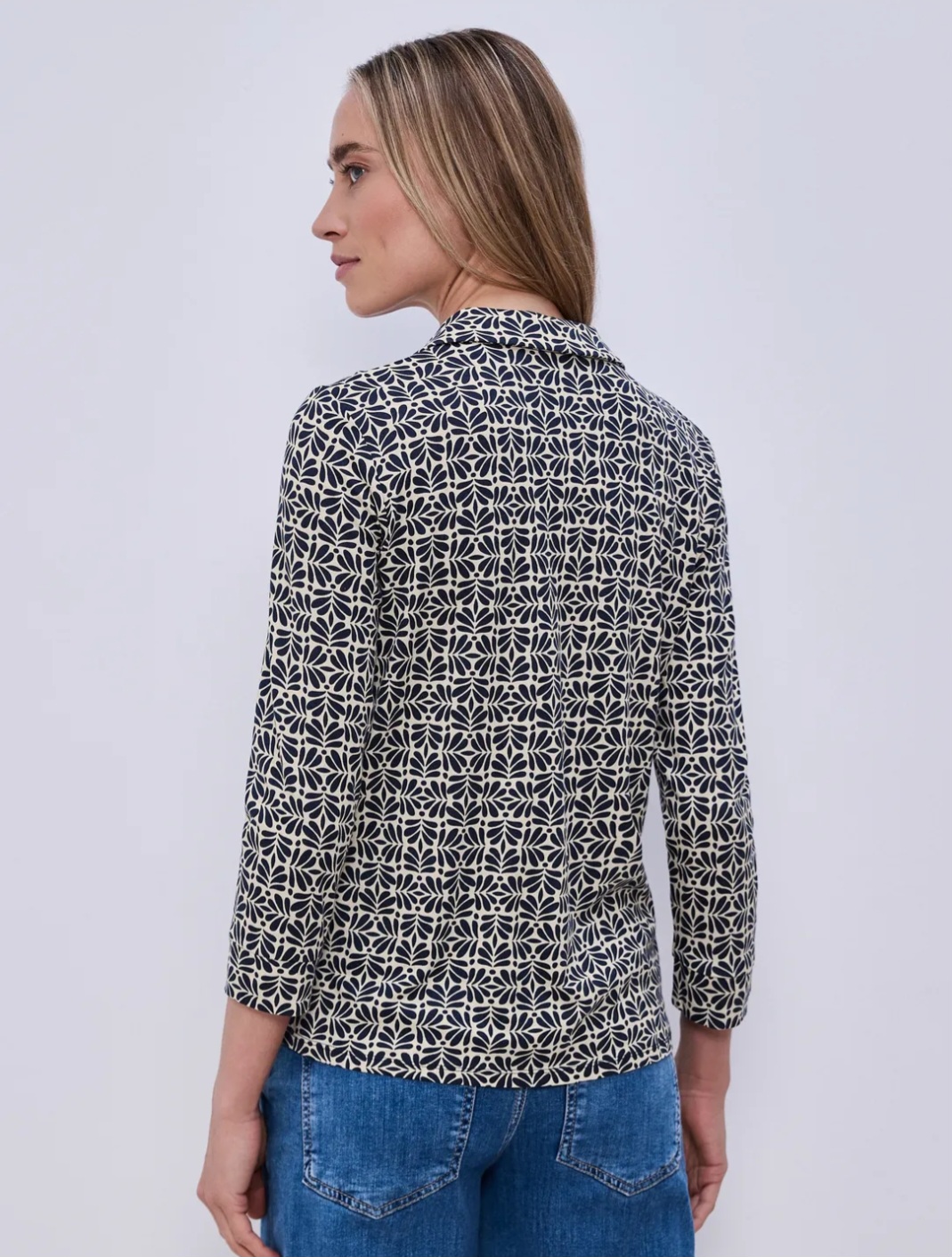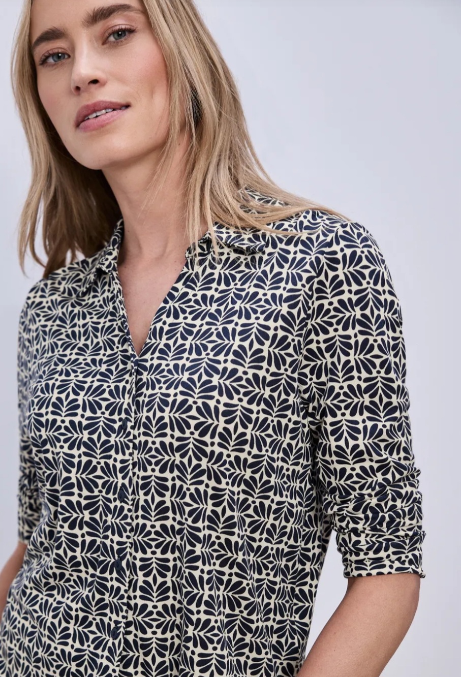 Jerseybluse Muster marine/creme